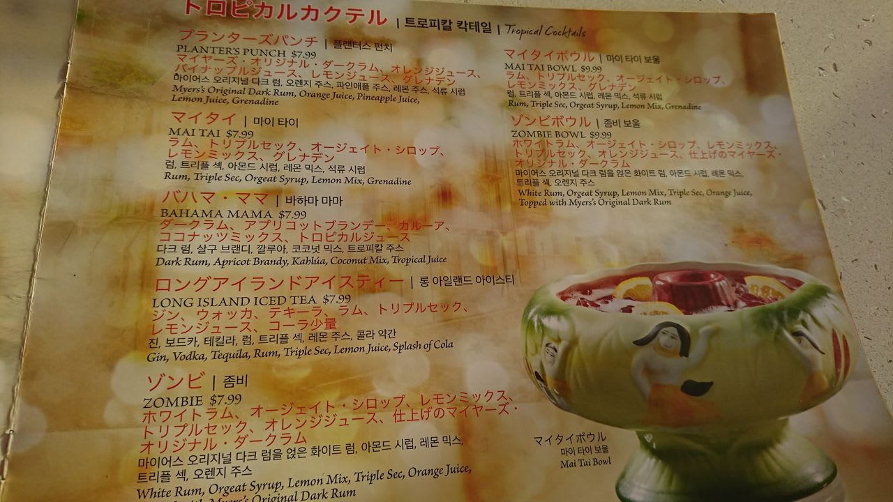 ここでバーのお兄ちゃんがメニューを渡してくれました。