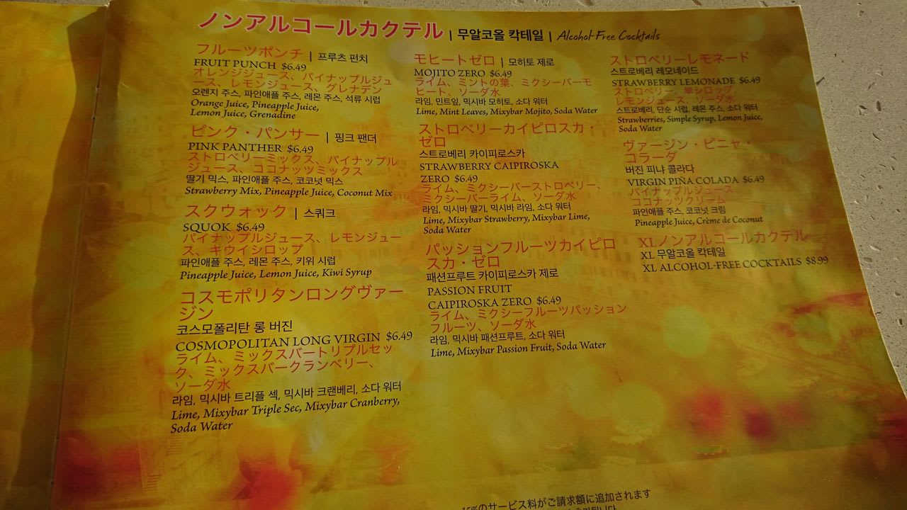 ノン・アルコール系の飲み物が結構あるのもポイントかなと思いました。