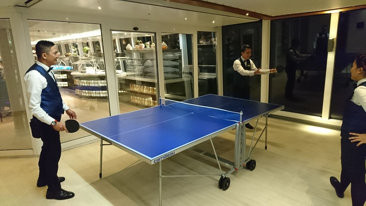 彼のおかげで、他のスタッフとも結構おしゃべりしたり、クルーズ船の勤務について話を聞けたりしたし、日本人乗客は船のスタッフとおしゃべりしてる人が少なかったので、是非トライ!