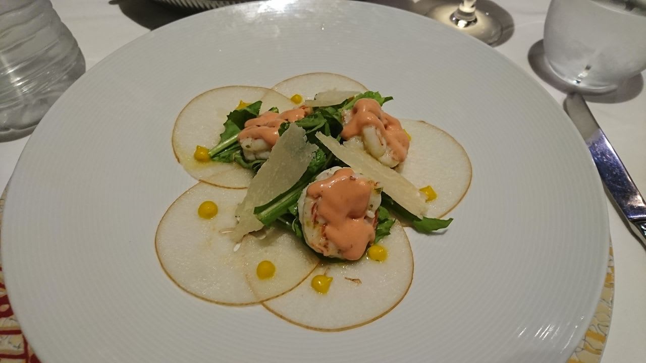 「サンタ・マルゲリータ産 大海老のオーロラソース和え」