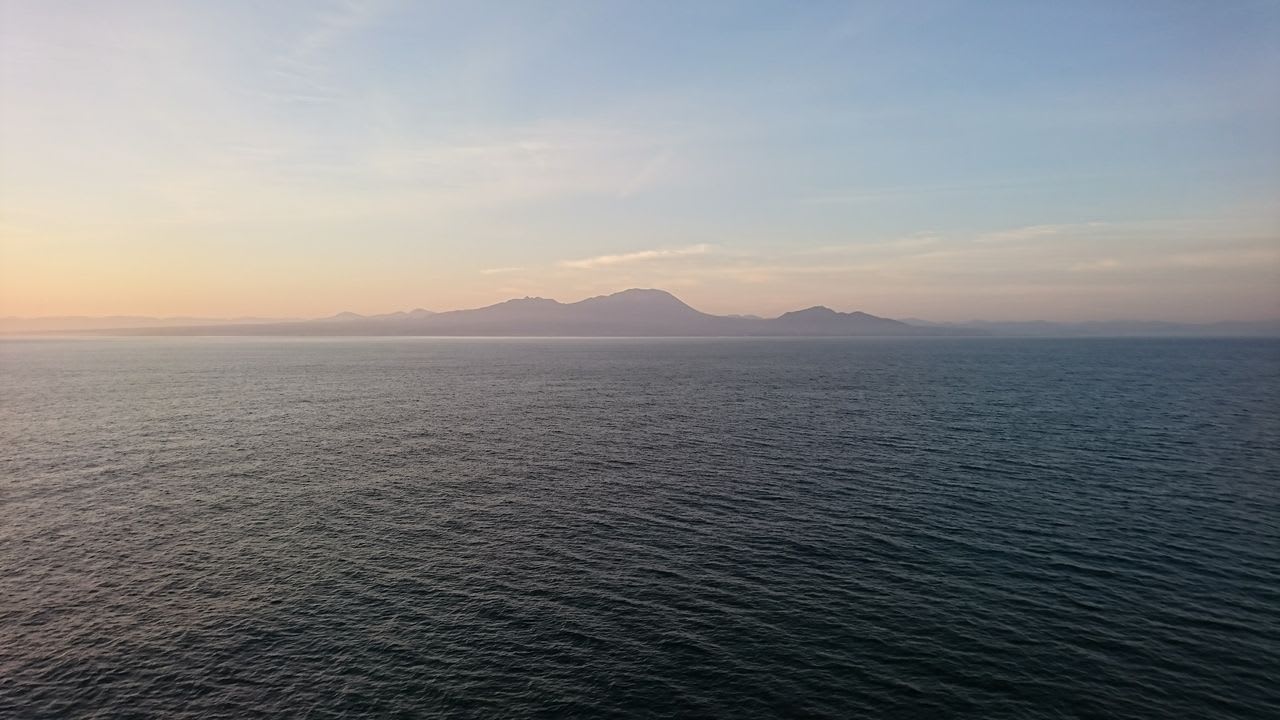 朝。目が覚めると、昨日続いていたゆっくりな揺れも収まって、船は進んでいました。