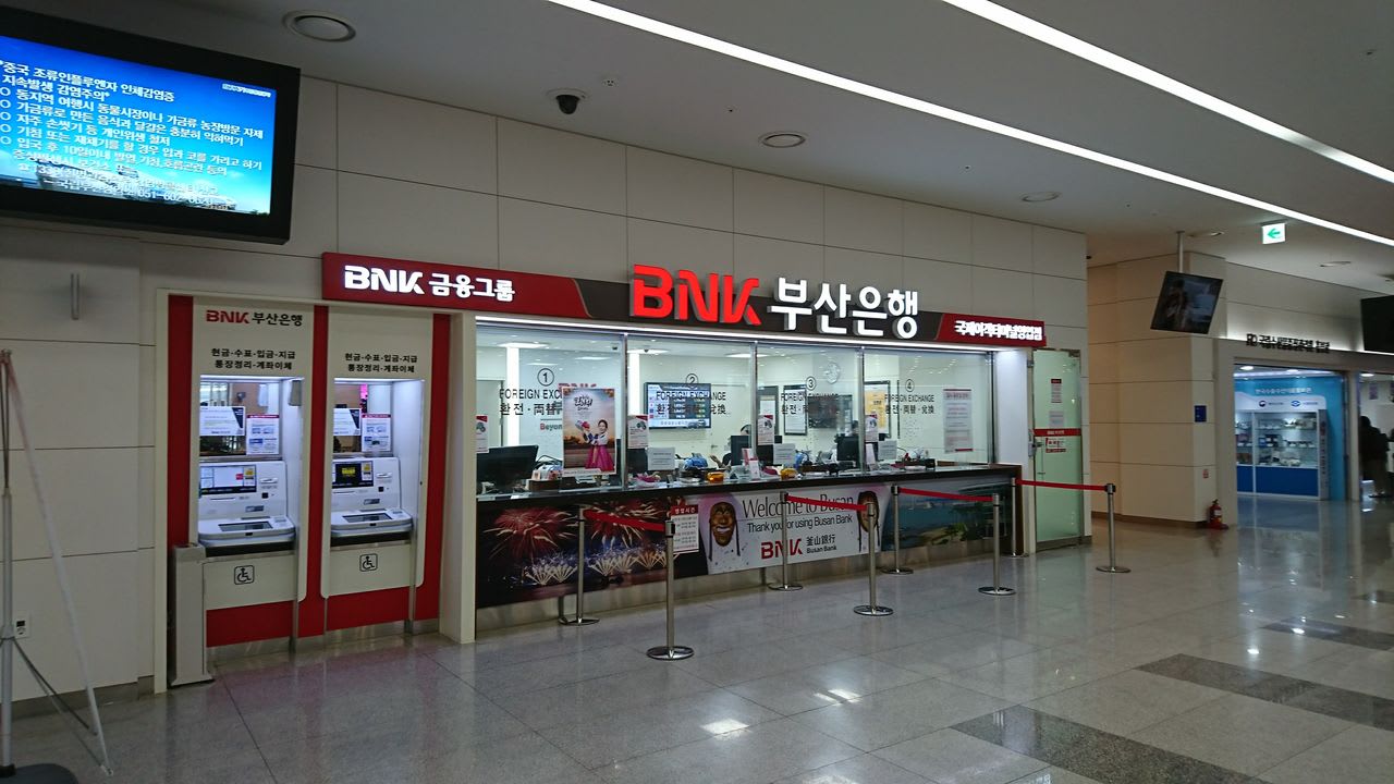 お菓子をもらったら、すぐ近くにある両替所で日本円を韓国ウォンに両替します。