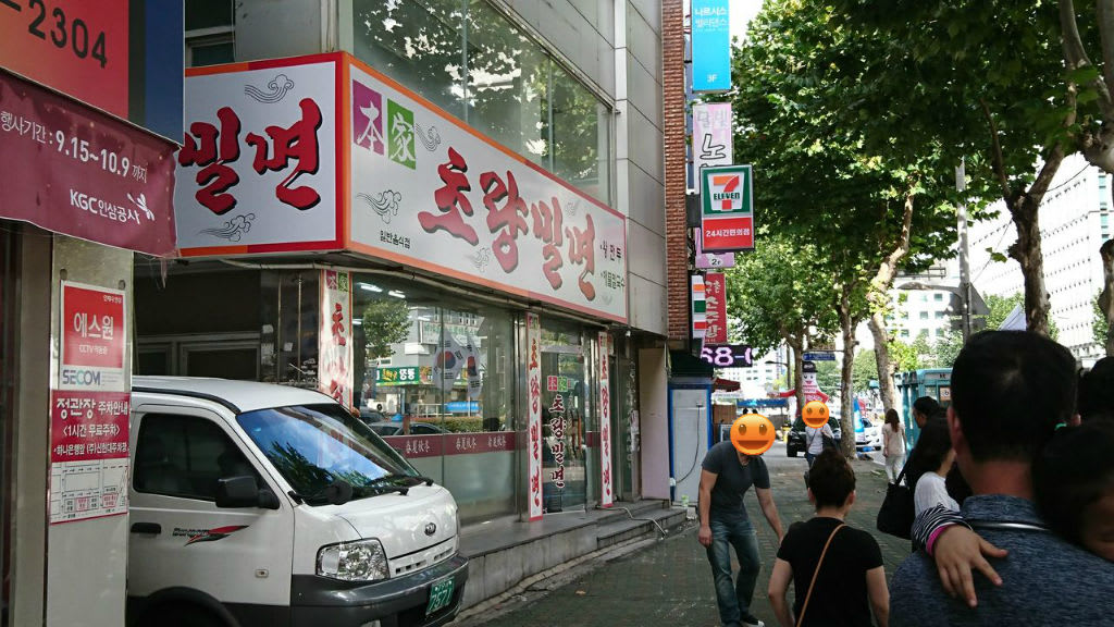 そう思いながら地図を参考にしてやってきたのは、釜山駅から徒歩数分にある「チョリャンミルミョン」既にお店前には結構な行列ができています。