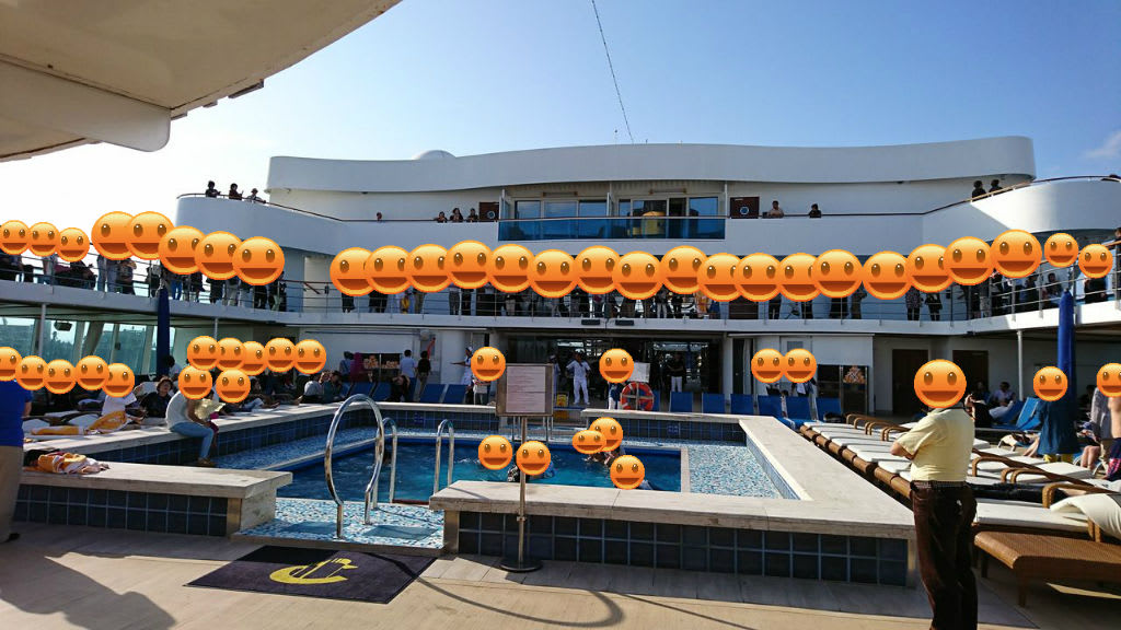 この日は天気もよく、気温も結構上がったので、船のプールで泳いでいる人もいました。