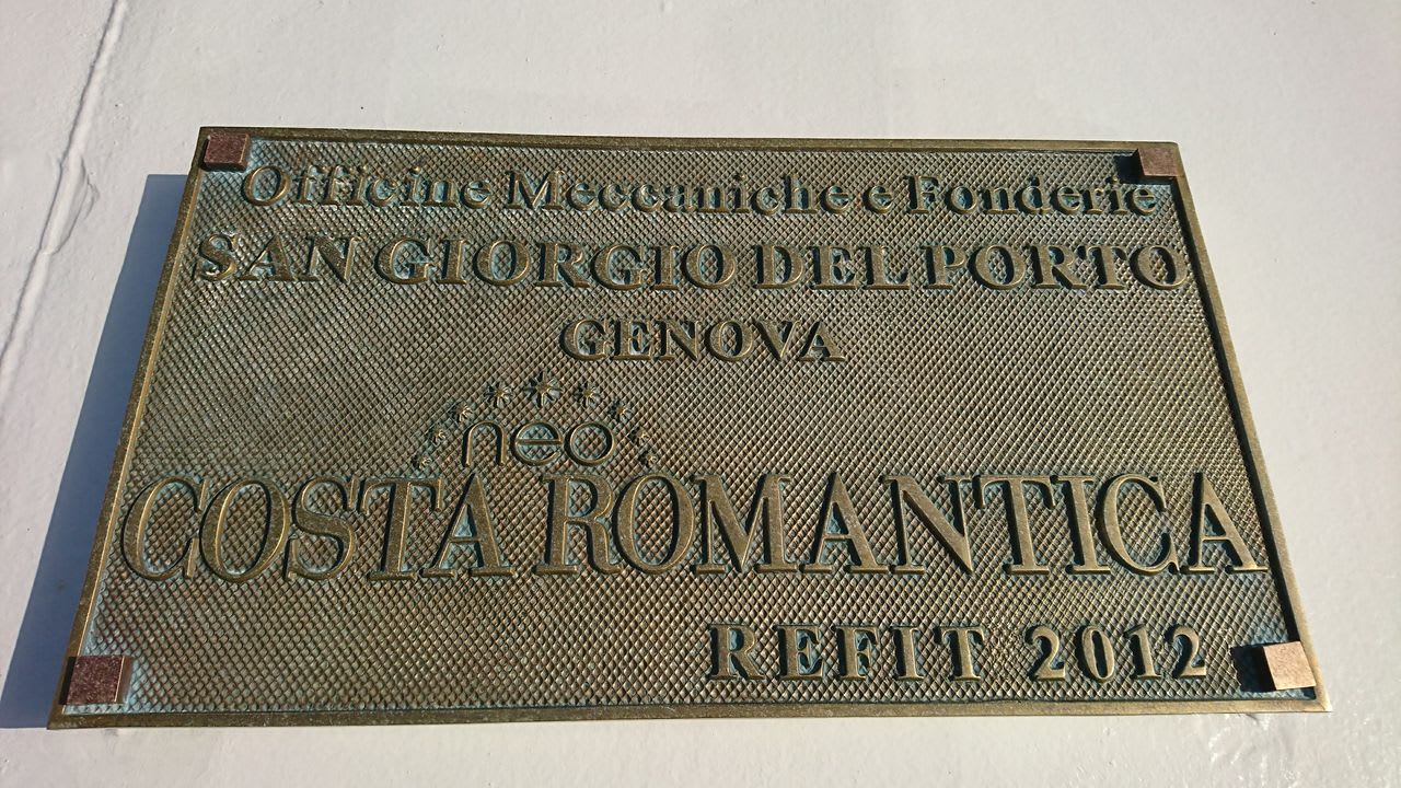 1枚目は「コスタ・ロマンチカ」の建造プレートです。