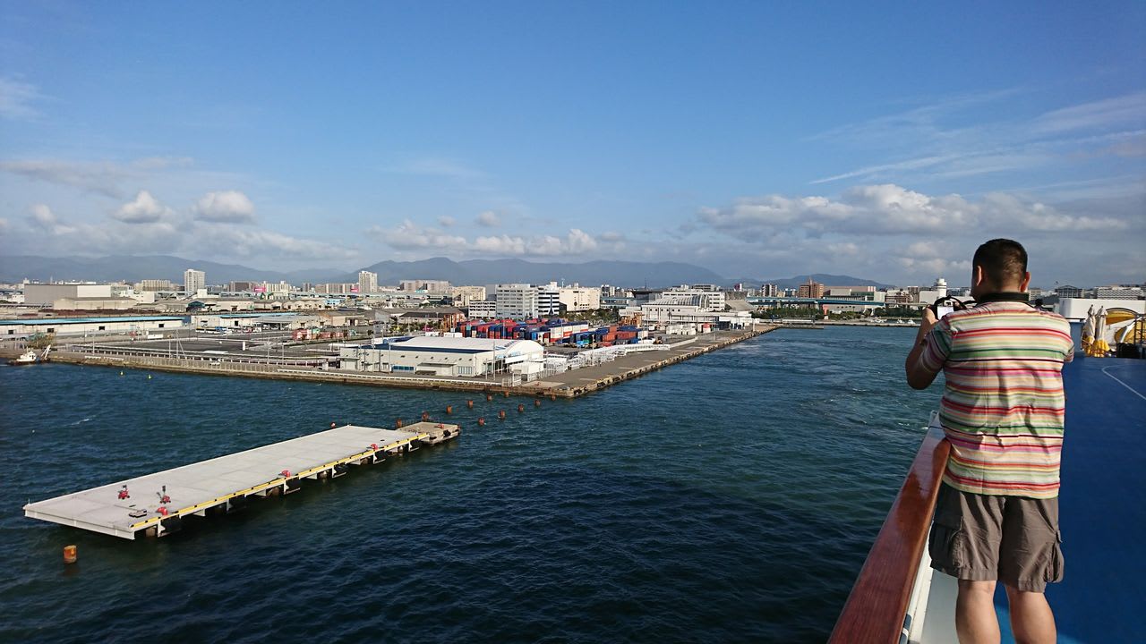 みんなが踊ったりはしゃいだりする中、ゆっくり福岡港を出港していきます。