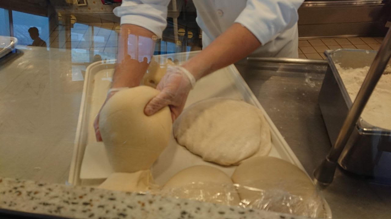 ピザ釜焼きではないものの、ちゃんと生地はその場で伸ばしています。