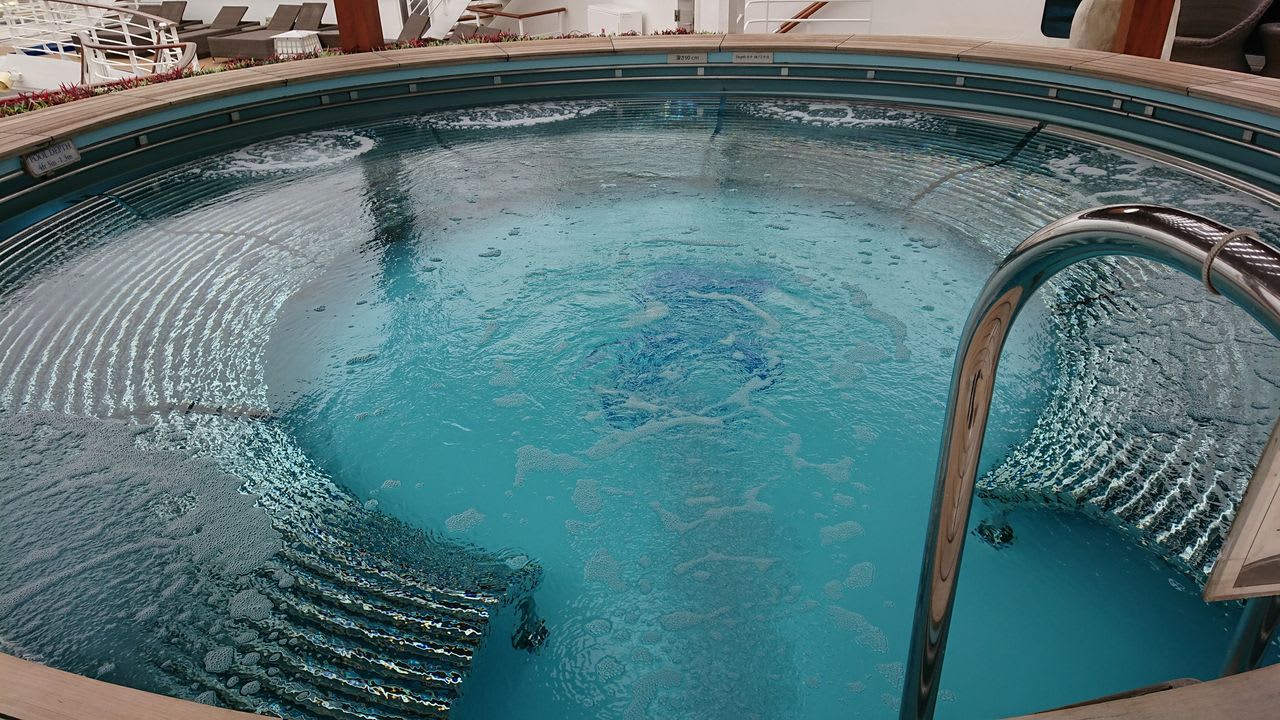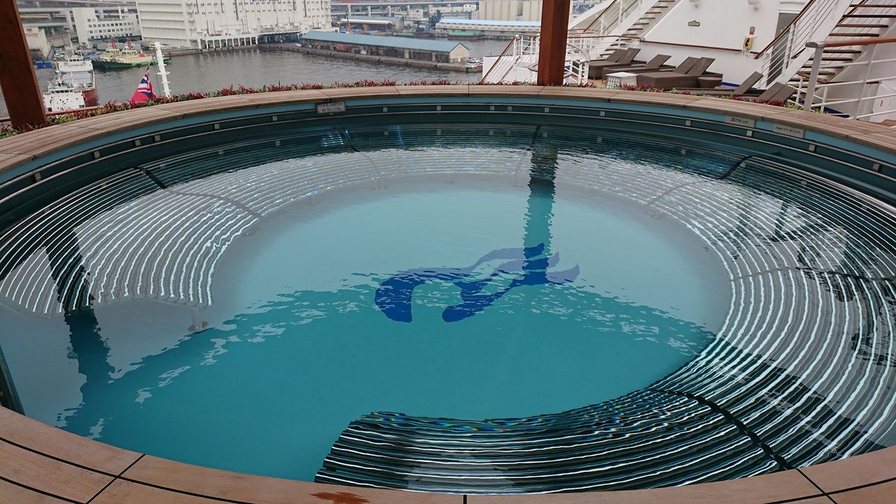 さて、船の後方までやってきたので、そのままデッキ15「サン・デッキ」にある「泉の湯」にやってきました!この「泉の湯」こそ、ダイヤモンド・プリンセス自慢の設備。