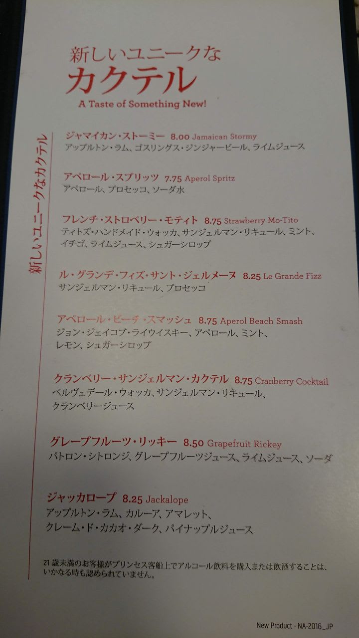 ダイヤモンド・プリンセス乗船記~その9~バードリンクメニュー大公開
