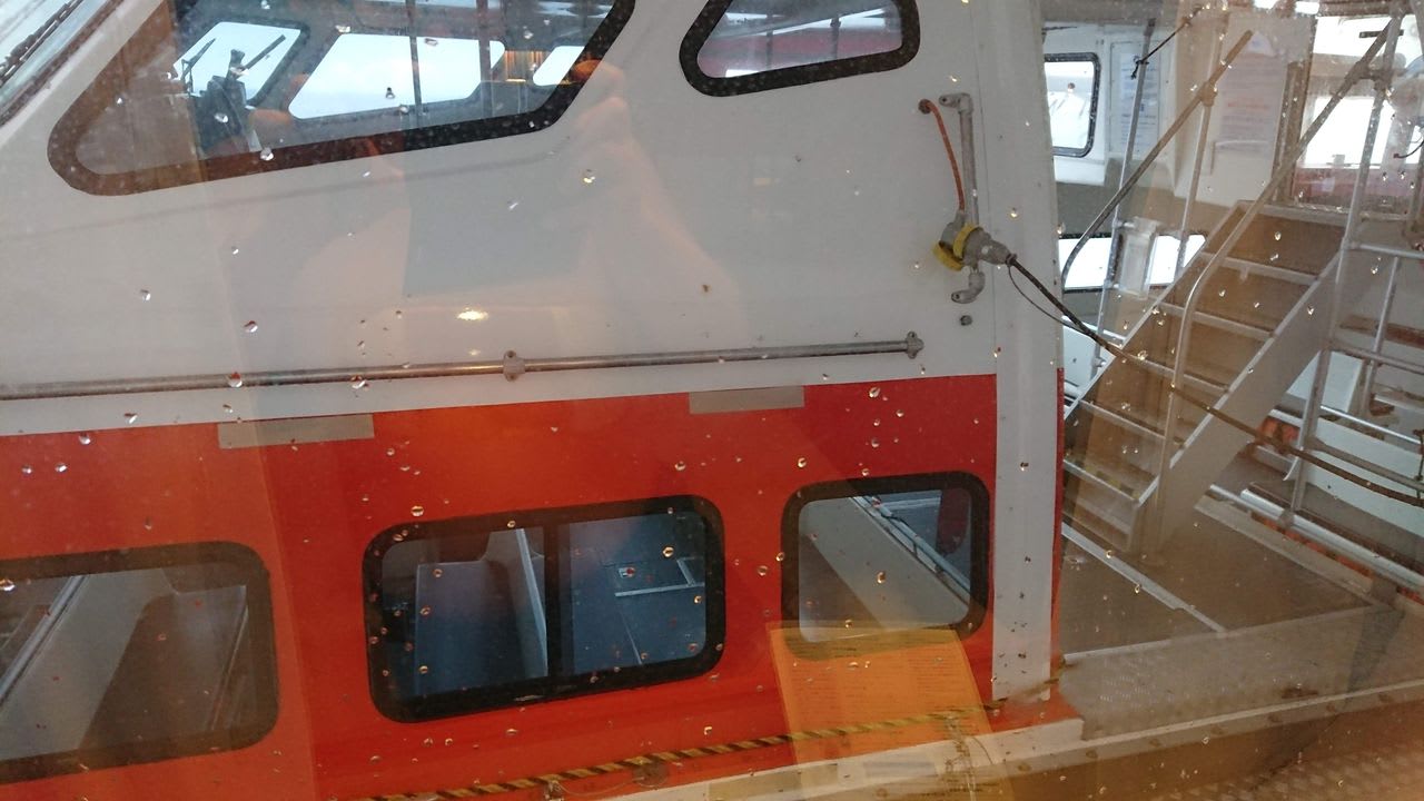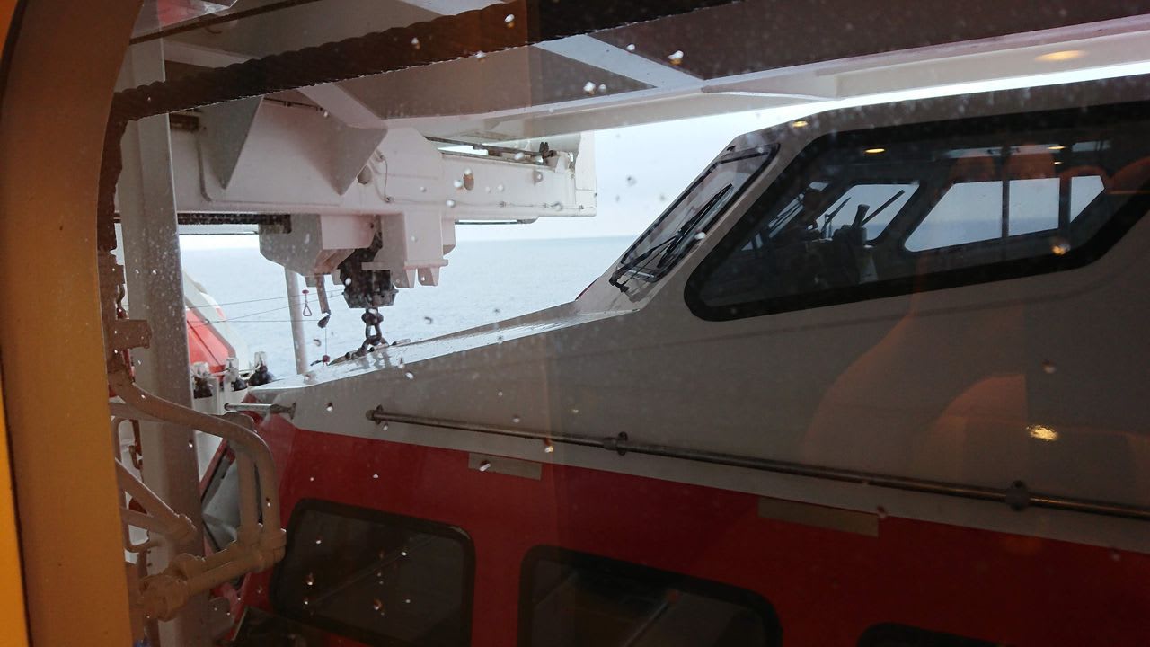 大きく視界に映っているのは「テンダーボート」と呼ばれる上陸用・非常用小型船です。