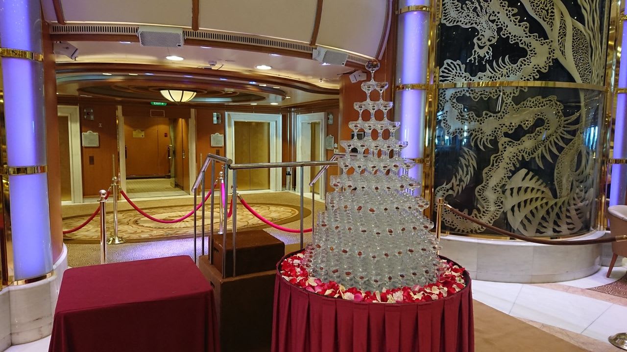 途中通りがかったアトリウムでは、シャンパンタワーの準備が進められていました。