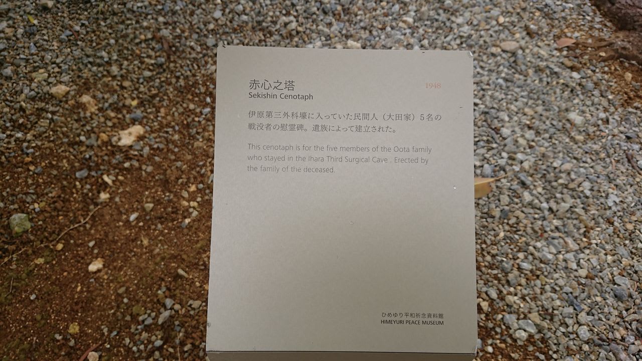 この慰霊碑はひめゆり学徒隊と同じ壕に避難していた大田一家を慰霊するためのもの。