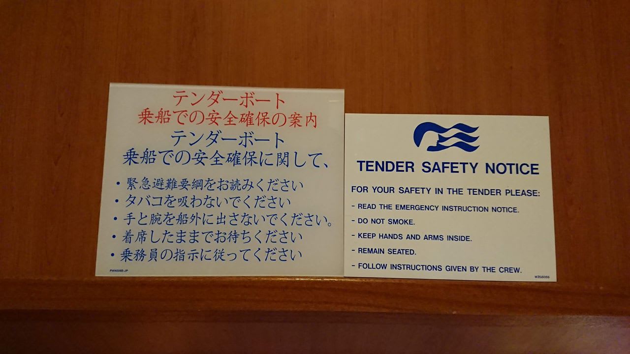 アナウンスと共に、ゆっくりと乗客の一団がデッキ4にあるテンダーボート接舷口に向かっていきます。