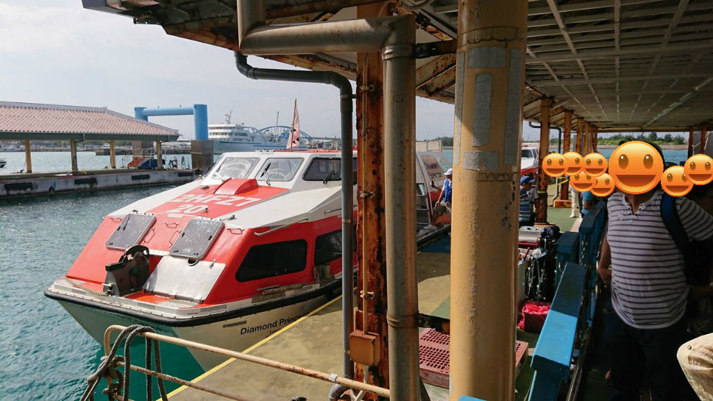 昨日の台風の影響で、まだ波がかなり高く、とにかく揺れる。