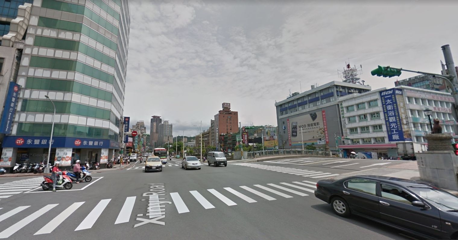 高層ビル(永豐銀行)の足元に交差点があるので、こちらを右に曲がります。