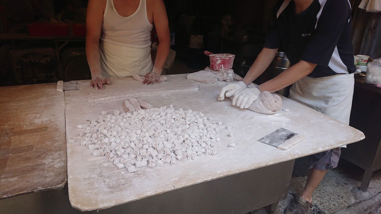 こちらの商店では白いお団子のようなものを製作中。