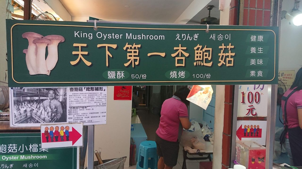 台湾ではメジャーな商品らしい「えりんぎ」の露天。
