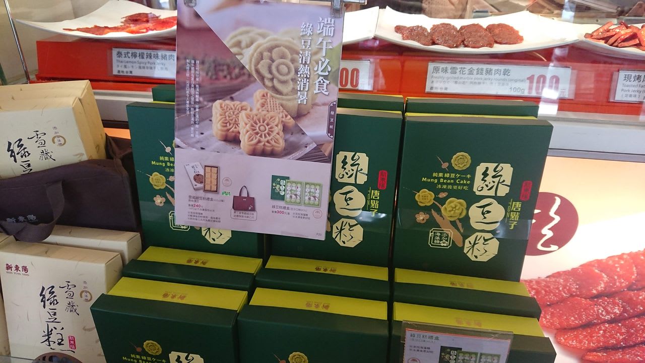 台湾の手土産といえば、有名なのはパイナップルケーキだそうなんですが、こういう街角のお土産屋さんのお菓子も風情があっていいですね~。しかもお菓子の造形がかなり綺麗なものもあって喜ばれそうです。緑豆と書いてあるので最中のようなものなんでしょうか。