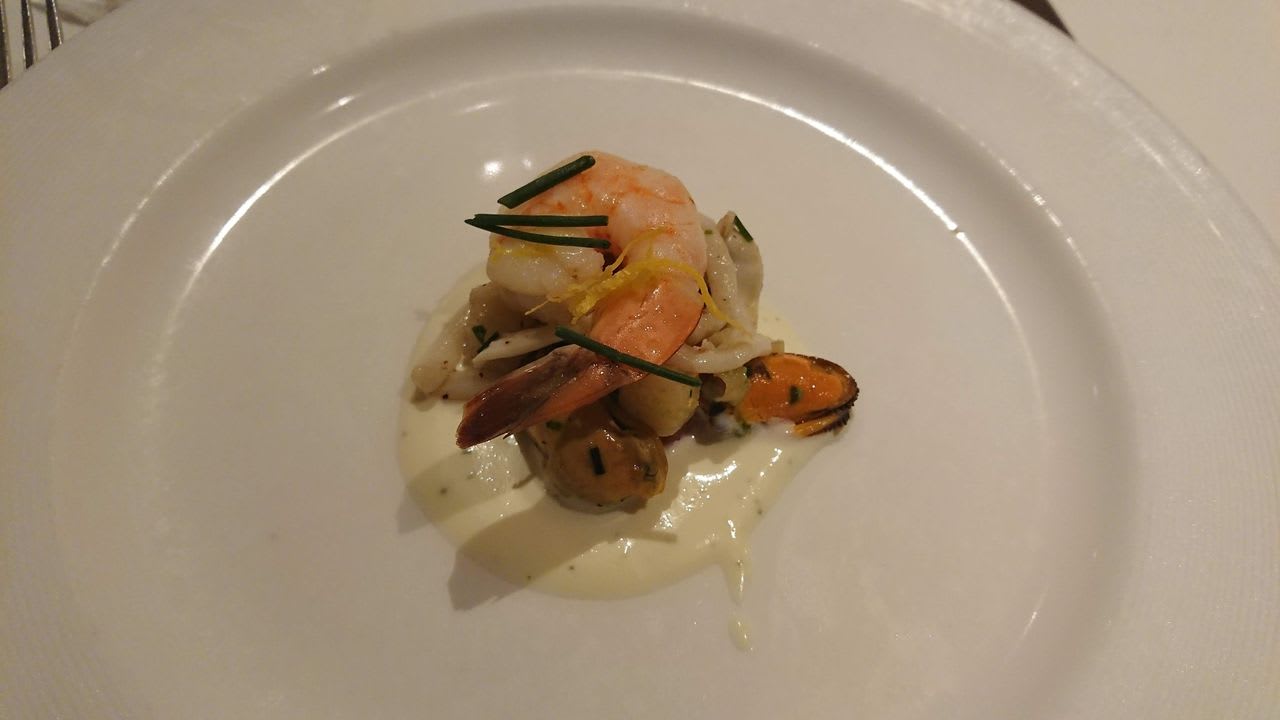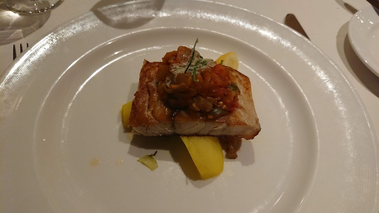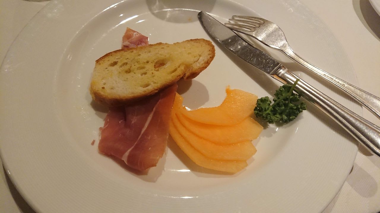 さて、夕食の時間になったので、部屋に戻ってコップにワインを注いだら、メインダイニングへGO!