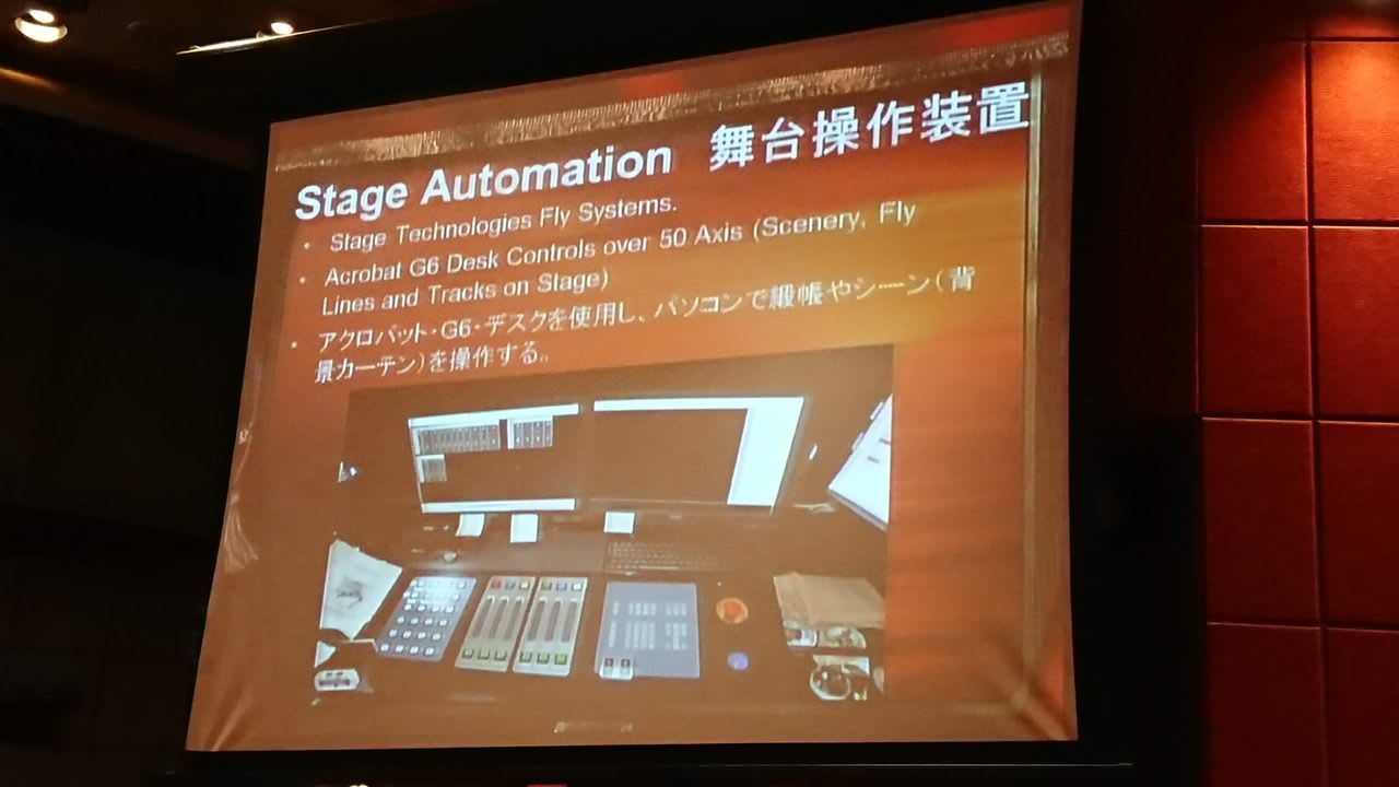 と、ここで、舞台演出のスタッフが、舞台上の背景装置を実際に動かしてくれました。