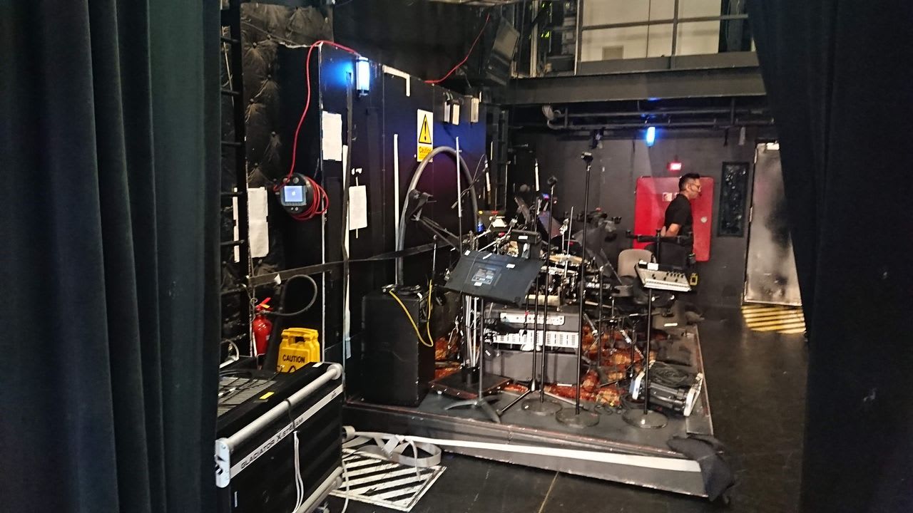 舞台袖には、ショーで使う小道具や楽器などもスタンバイされています。