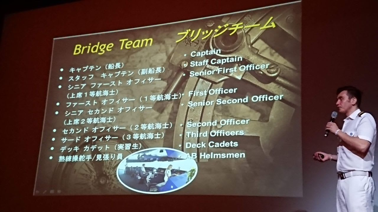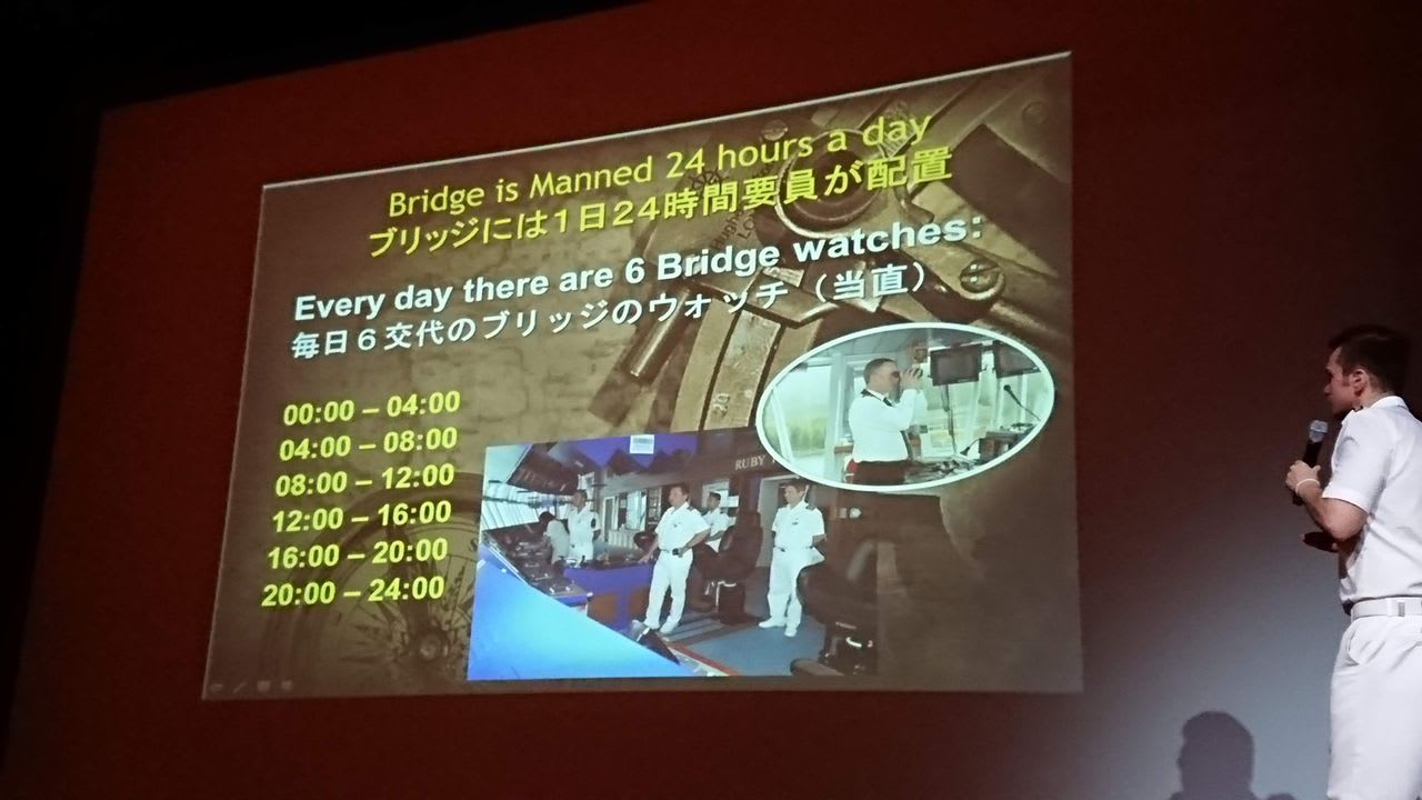 今度は、船の操舵室の裏側を実際のクルーが教えてくれる「ナビゲーション・アット・シー」というイベントでございます。