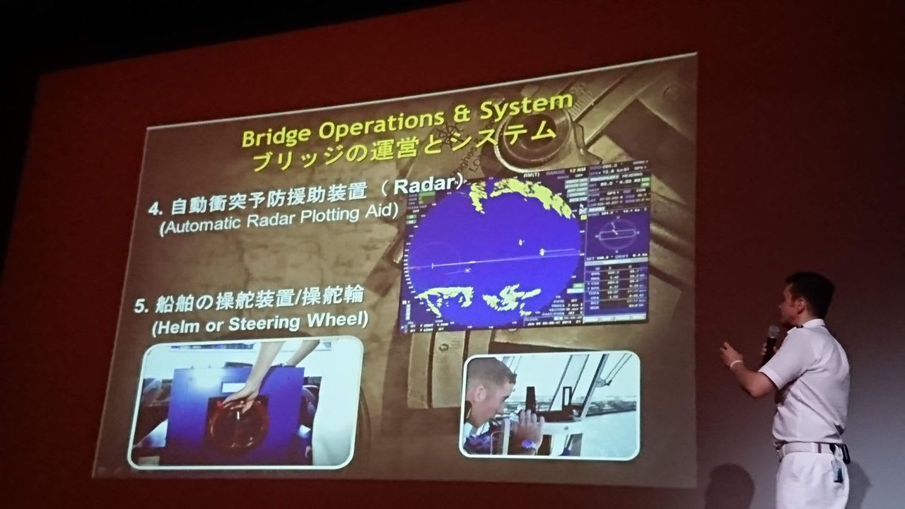 解説してくれるのは、ブリッジクルーの航海士の方。