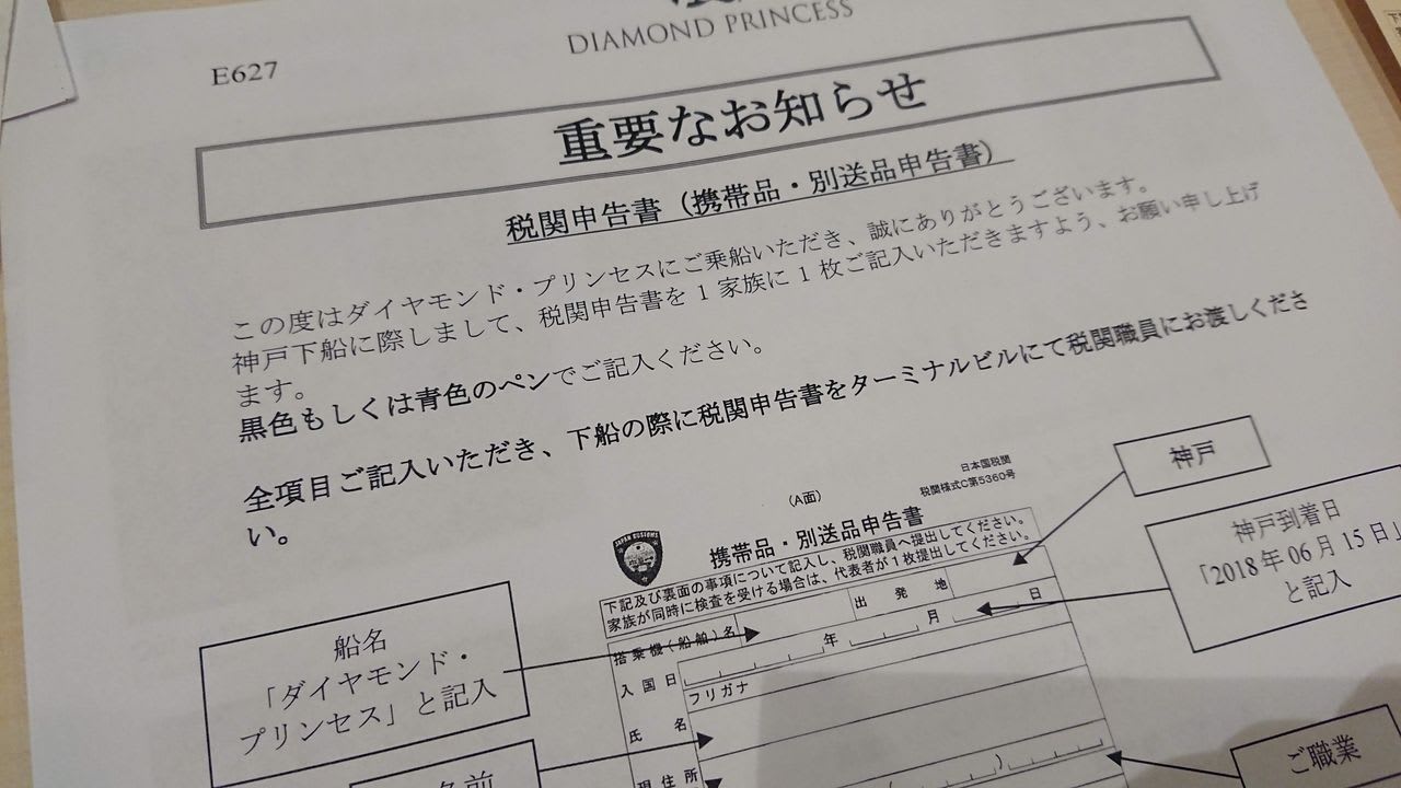 神戸で下船した際に税関を通過するので、その書類を事前に作成しておく必要があります。