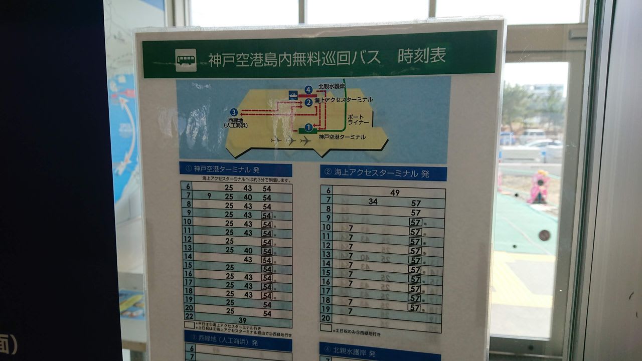 というわけで三宮からポートライナーと呼ばれる新交通システムに乗車し、神戸空港駅で下車。そのままベイシャトルの乗り場まで無料のバスが出ているので乗車し到着しました。