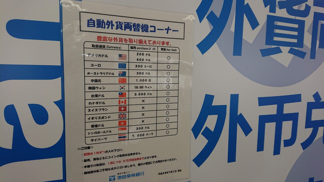旅行客のための外貨両替コーナーがあります。
