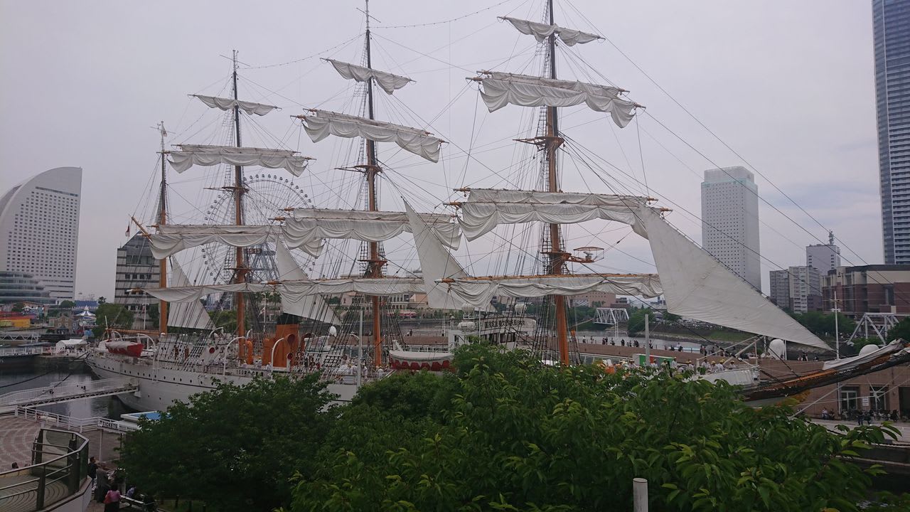 この日は横浜開港祭というイベントが大規模に開催されていたためか、博物館は閉館していましたが、船の帆を畳む作業を見ることができました。いや~何人もの船員で帆を畳むのって大変なんですね~。