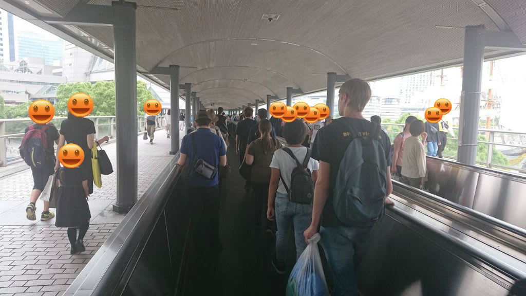 駅からみなとみらい方向に向けて動く歩道が延びていたので、そちらを通ります。