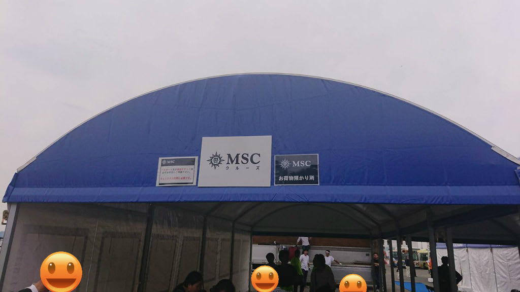 「MSCスプレンディダ乗船の方はこちらにお進みください~」 なんと、MSCのシャツを着た誘導の方が立っていました。