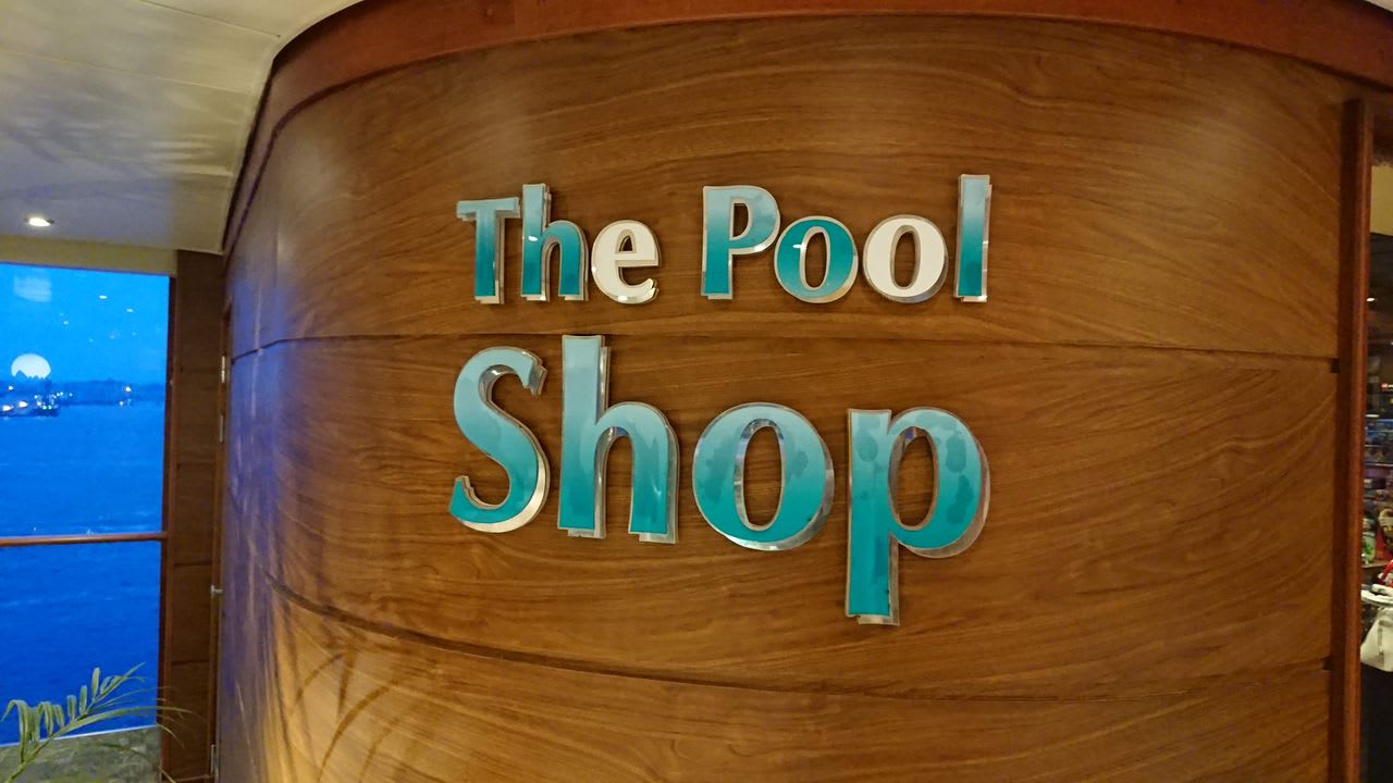 デッキ14のインドアプールの近くには、なんとプール用品のお店がありました。