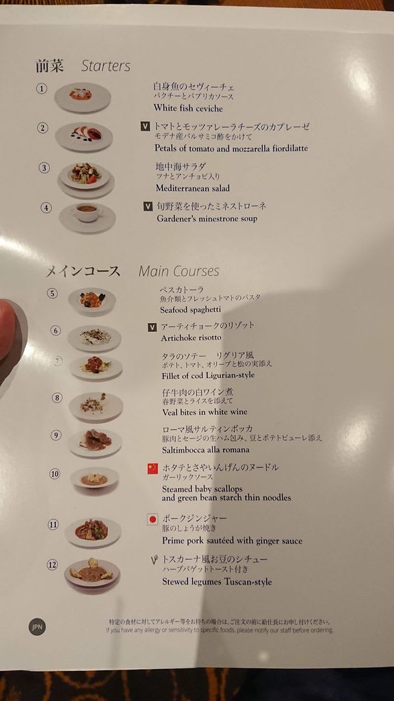これは以前のコスタ・ネオロマンチカでもそうでしたが、イタリア船に乗船するときはイタリア料理を頼んでおけば外れることは少ないんじゃないかと思います。イタリア人は料理の味には結構うるさいはずなので、自分たちの国の料理を不味く出すはずはないですからね~。