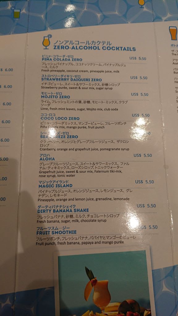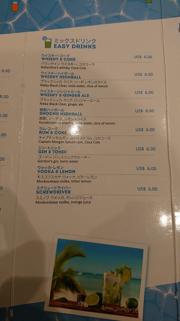 MSCスプレンディダ乗船記~その14~プールバーメニュー大公開