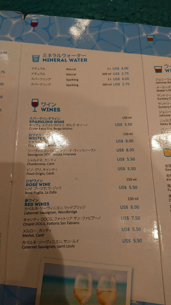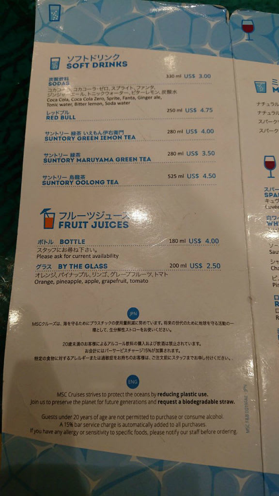 MSCスプレンディダはバーによってメニューのデザインが違うんですよね。