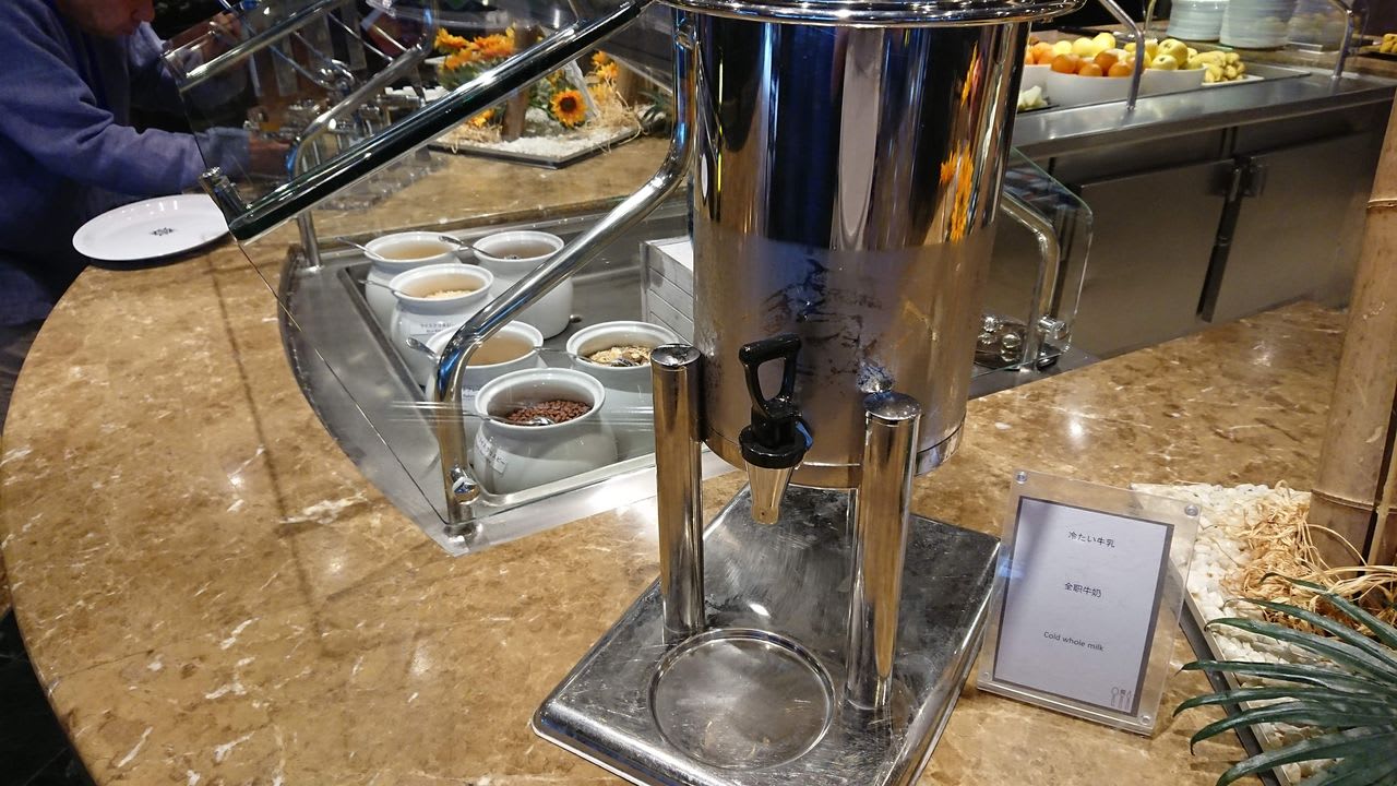 シリアルコーナーには冷たい牛乳も。