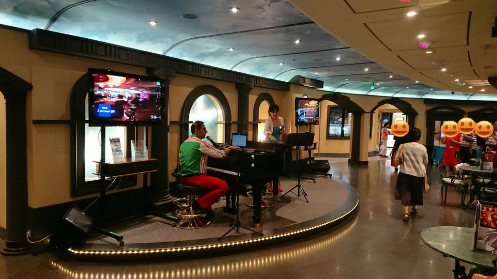 ディナーの後は、船内各所で音楽が流れ始めます。