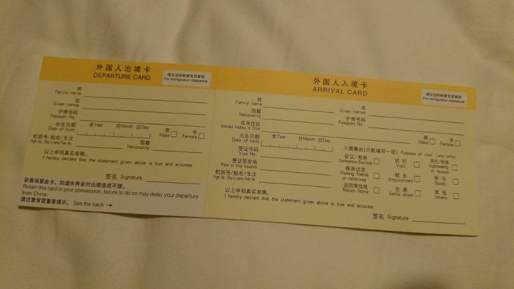 入境の隣の漢字は日本語にはない文字(上+下みたいな文字)ですが、これは「カード」的な意味合いの漢字です。まぁこれは明日までに書けばいいので失くさないように今は金庫に保管。