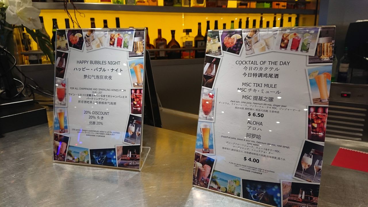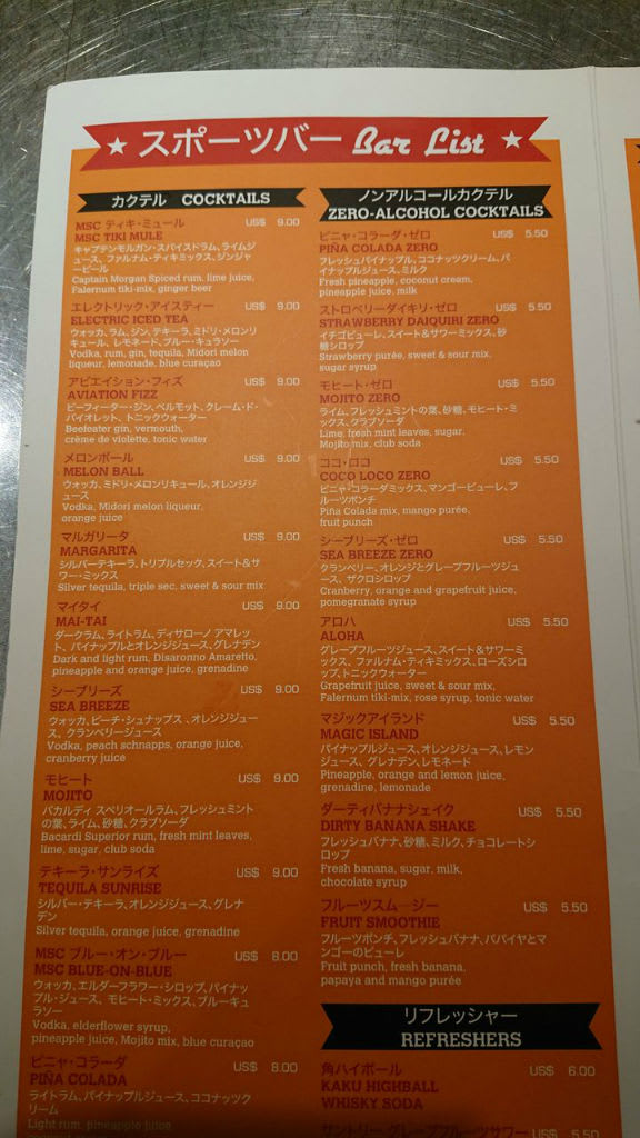 夜用のスーツに着替えたら、ちょっと喉が渇いたのでデッキ7にある「スポーツバー」にやってきました。