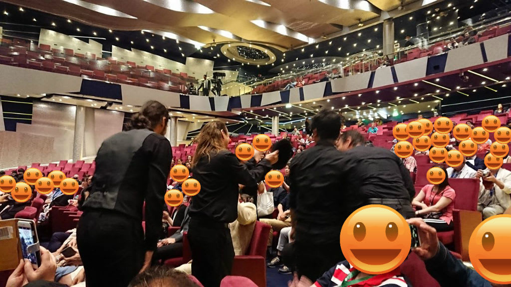 開始までの待ち時間には、謎の観客いじりがあったりと、退屈しないように工夫してくれています。