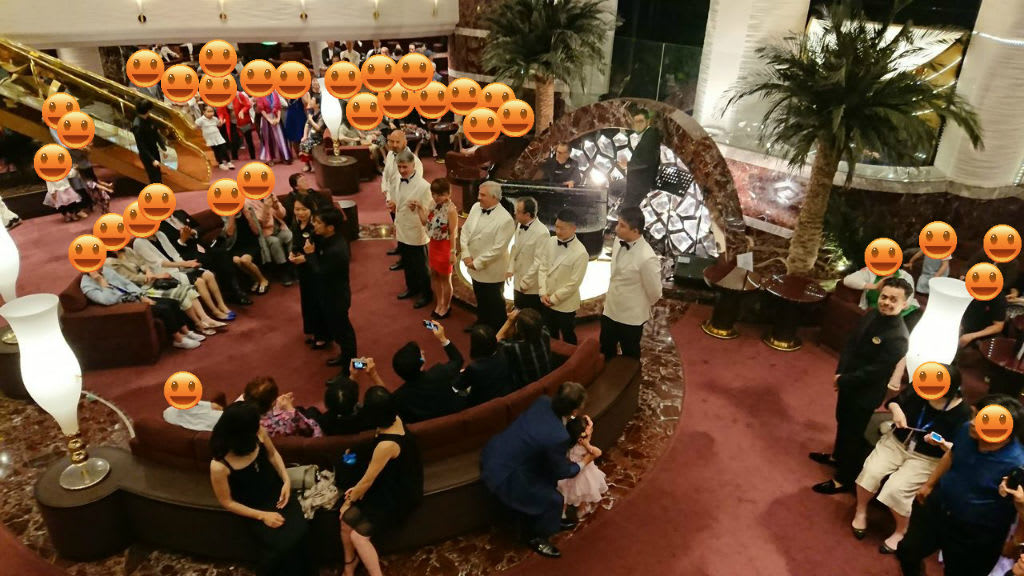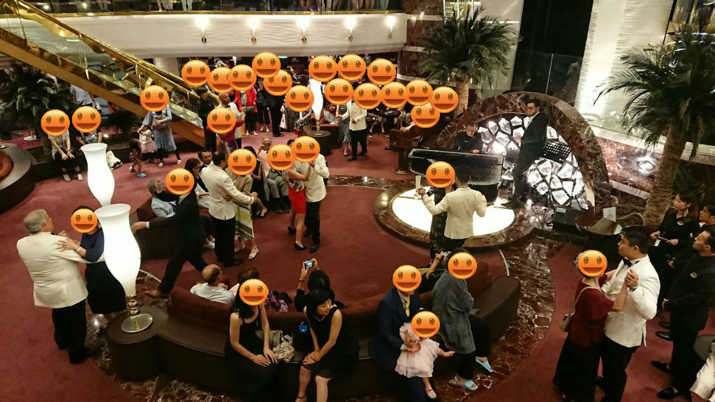 こちらはクルーズ船恒例のオフィサーとのダンスイベントですね。