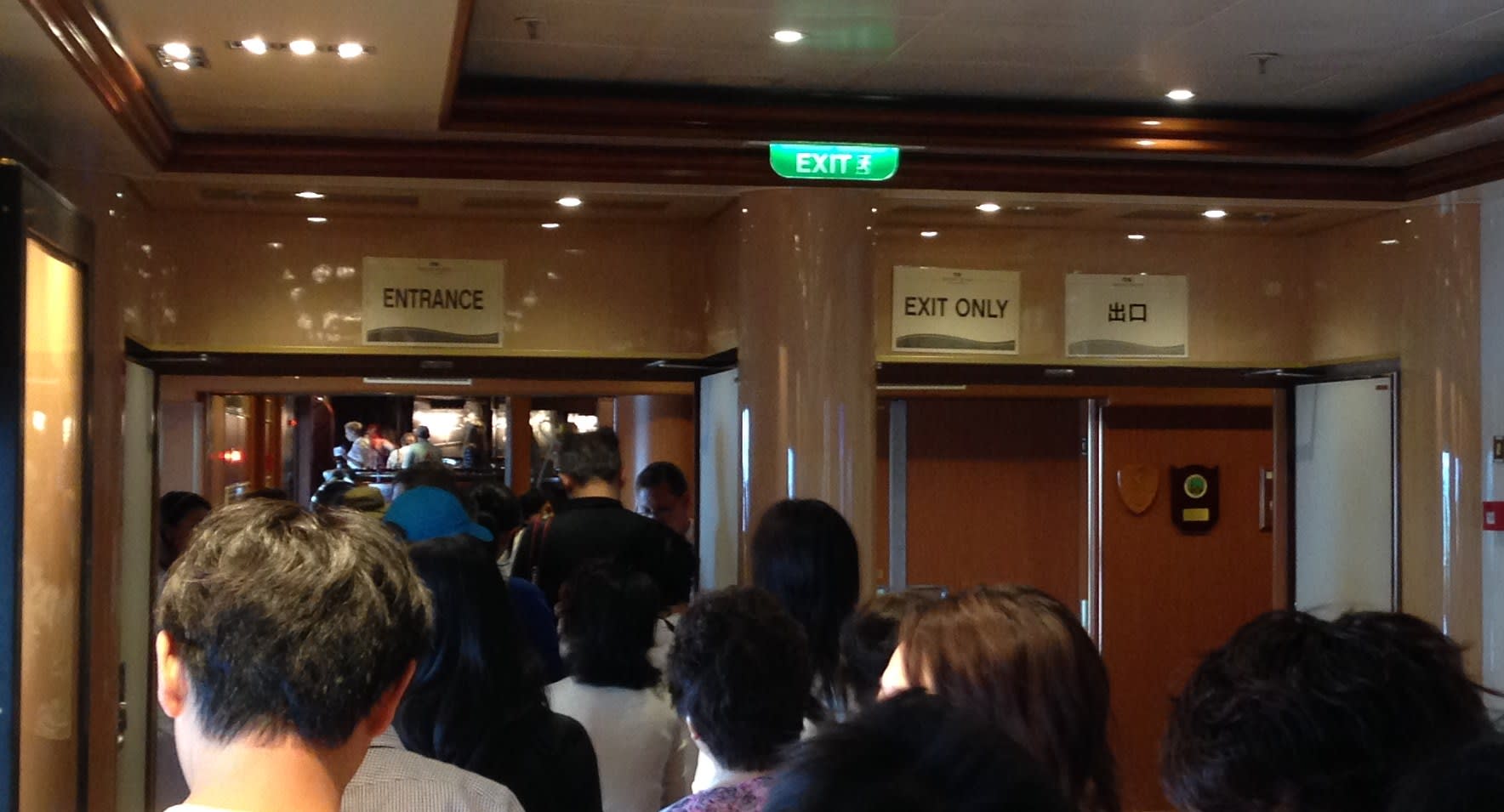 この日は、船内クラブフュージョンにて、出国審査がありました。