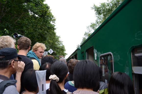 小さい駅の細いホームに人があふれて大変でしたわ~~~。まぁ笑えるけど。