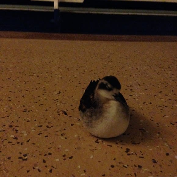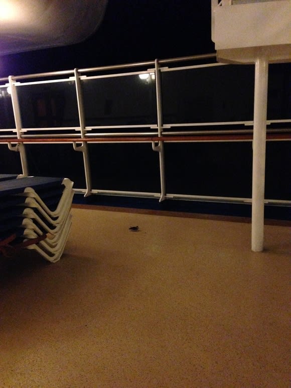 逃げる事もなく、お船の甲板で眠る鳥を見て、