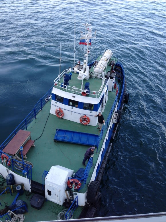 このおっちゃん達は、スタッフが無事に船に乗り移ったら、私達に手を振ってコルサコフに戻って行かれました。