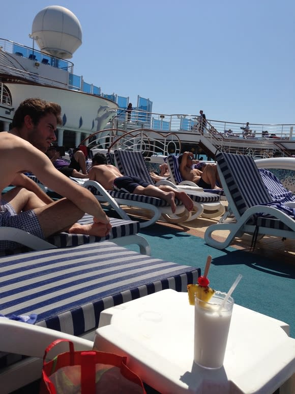プールでしばし泳いで身体を動かした後は、プールサイドでピニャコラーダ。