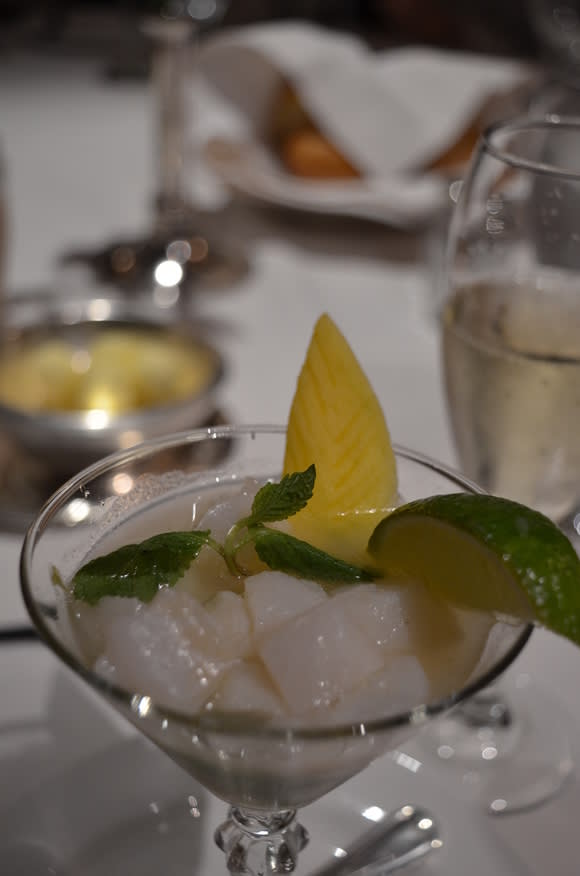 こちらではレッドスナッパーの切り身をグラスに入れて、ミントの葉やドレッシングを使って、モヒートとしているあたり、なかなかニクイ演出です。