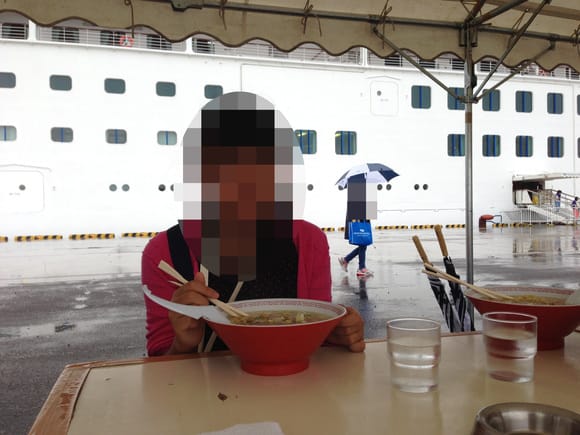 私達の横では、台湾?からお見えになったと思われるお船のお客さんもラーメンを召し上がっていました。